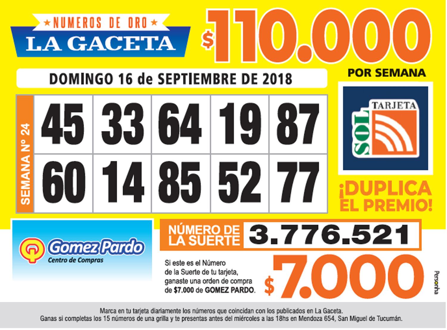 Los Números de Oro de LA GACETA del 21 de febrero de 2026