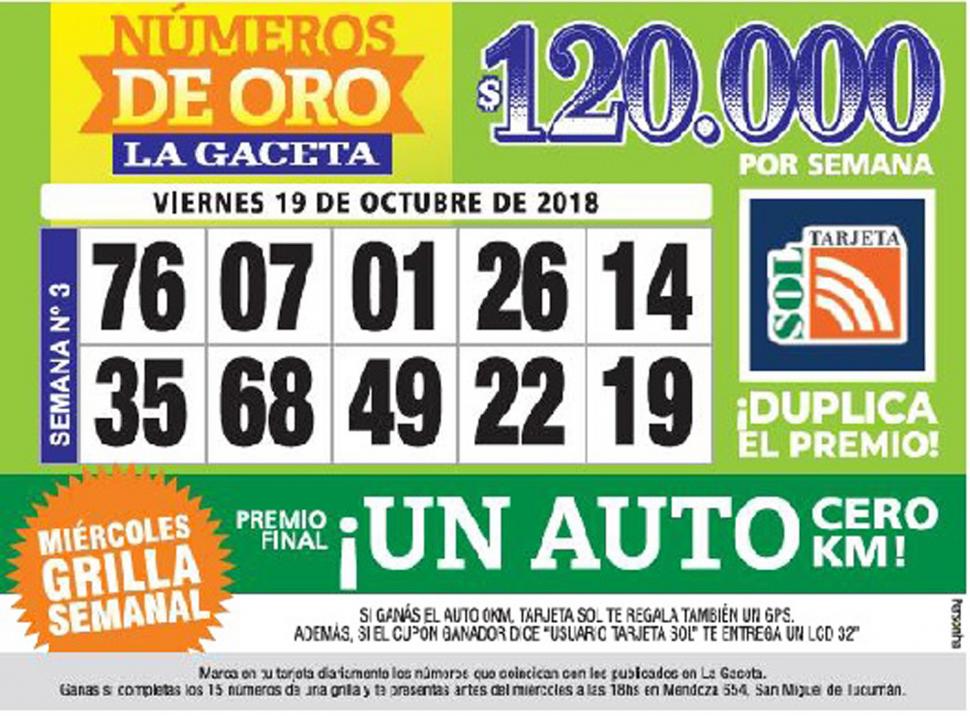 Los Números de Oro de LA GACETA del 20 de febrero de 2026