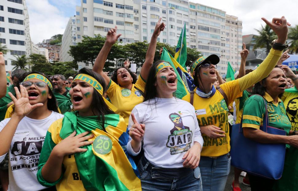 CON JAIR. En Río de Janeiro se concentraron simpatizantes del líder ultraderechista, a siete días del balotaje. reuters
