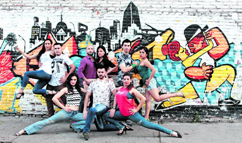 SINCRETISMO. Poses tradicionales del baila tanguero con cuerpos enfundados en jeans y remeras expresan el sentimiento de La Jugarreta Tango.