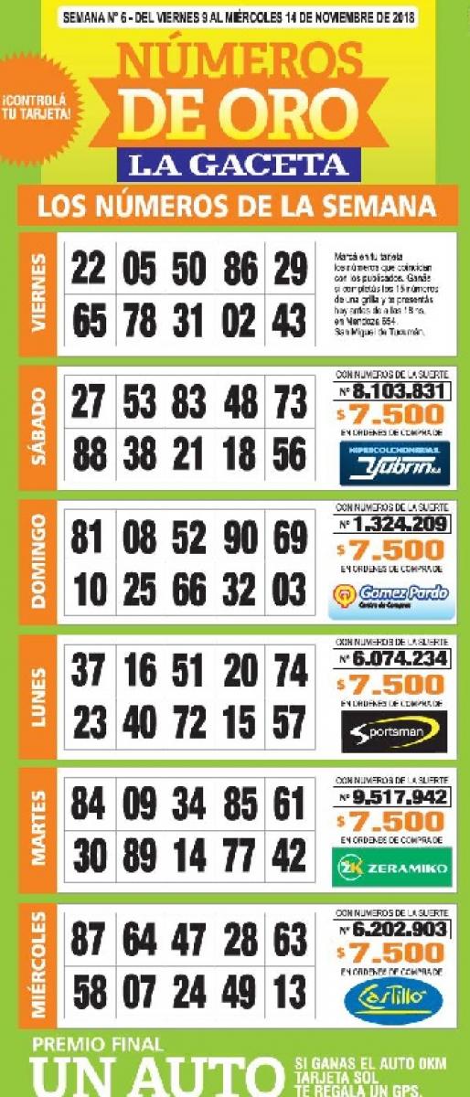 Como cada miércoles se publicó la grilla completa de los Números de Oro de LA GACETA para que los lectores puedan revisar sus tarjetas. Aquellos que completen los 15 números de una de las grillas de su cartón deberán presentarse en calle Mendoza 654 hasta las 18.