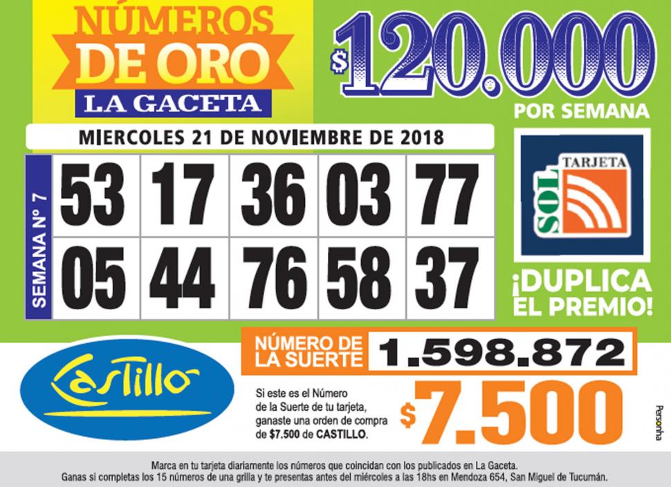 Los Números de Oro de LA GACETA del 21 de febrero de 2026
