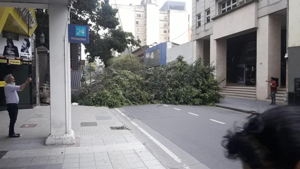En el microcentro, hubo caída de árboles en San Martín al 600 y techos y toldos de algunos negocios en otras calles. Efectivos policiales tuvieron que cortar las esquinas de Córdoba y 25 de Mayo y Maipú y Córdoba.