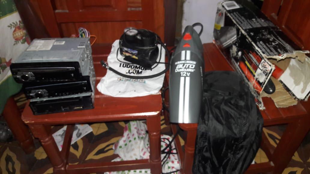 Se incautó una gran cantidad de elementos entre ellos: tres handys, uno con la frecuencia policial; dinero en efectivo ($28.230); 24 billeteras y monederos; chapa y credencial identificatoria de la Policía de Tucumán; 10 DNI de distintas personas; tres licencias de conducir; cinco tarjetas de crédito; tres estéreos; un reloj taxímetro; cinco gatos mecánicos; un elemento de hierro de fabricación casera en forma de letra “T” -chupete- y un GPS.