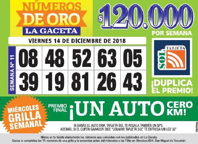 Los Números de Oro de LA GACETA del 20 de febrero de 2026