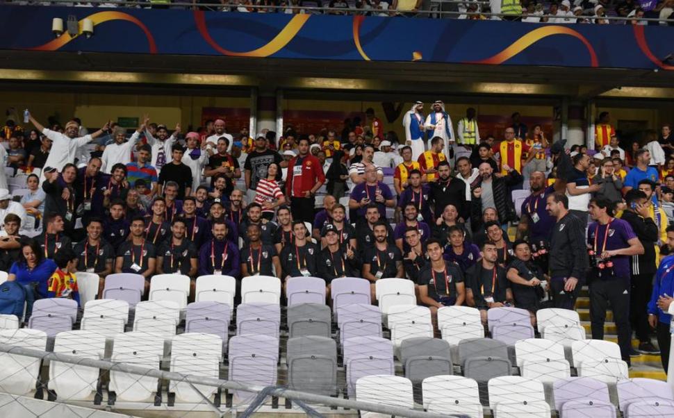 ESPECTADORES. El plantel de River estuvo en el estadio Hazza Bin Zayed observando el partido de Al Ain-Esperance. twitter @CARPoficial