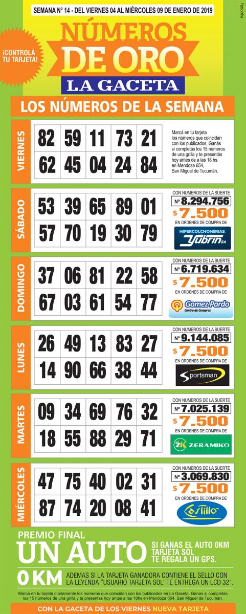 Los Números de Oro de LA GACETA del 20 de febrero de 2026