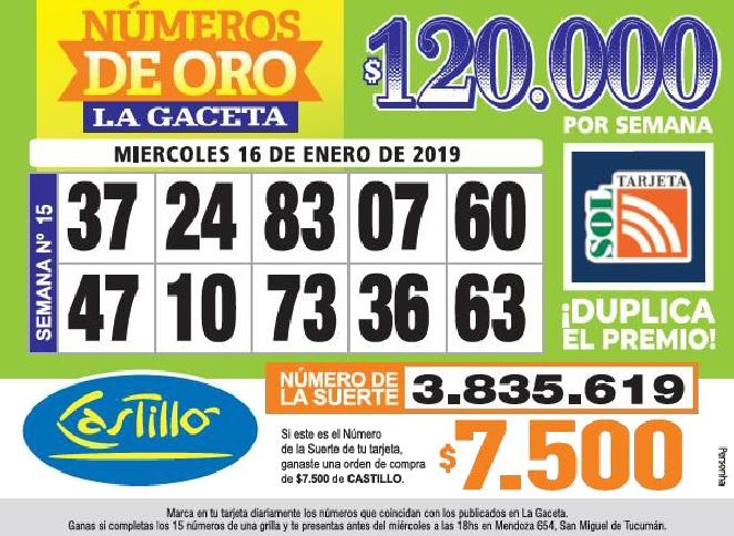 Los Números de Oro de LA GACETA del 21 de febrero de 2026