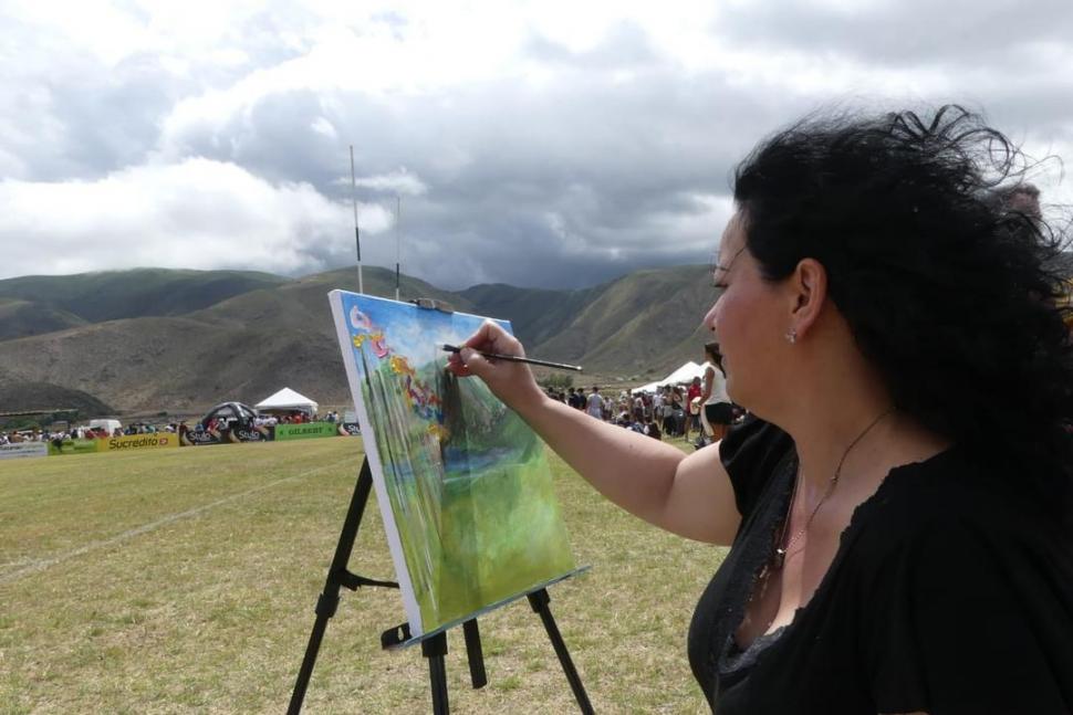 Sentada bajo el sol en una esquina de la cancha principal, Mariela Bellotto vuelca en un lienzo aquello que siente sobre todo lo que tiene ante sus ojos. No tiene nada planeado: para ella, el arte se trata de emociones que fluyen, y cuando esa corriente se produce, sus manos vuelan. “En una cumbre internacional de tango, pinté tres cuadros en cuatro tangos. Cuando algo me emociona, es así”, describe. Por fortuna, el rugby también la emociona, y por eso aceptó el reto de pintar cuatro cuadros para que fueran entregados en la premiación. “Lo que amo de este deporte es el contexto, que puedas traer a tu familia. Recuerdo que yo iba a ver jugar a mi hermano (el ex Puma Javier Belloto) con los dos bebés en brazos”, cuenta la madre de Isaías y Nahuel Montoya Bellotto, jugadores de Unsta (Huirapuca). Al final hizo cinco cuadros. ¿Para quién fue el quinto? Para un achilatero que se paró varias veces a ver cómo pintaba.