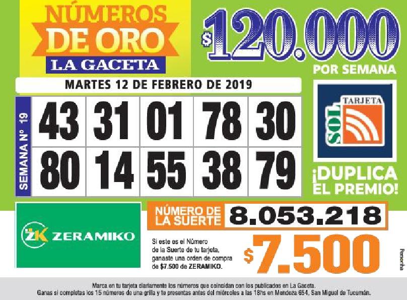 Los Números de Oro de LA GACETA del 20 de febrero de 2026