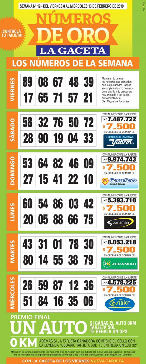 La grilla completa de los Números de Oro de LA GACETA
