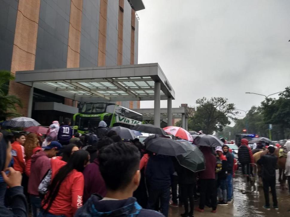 Hinchas “millonarios” esperaron más de dos horas a que los jugadores de River salieran del hotel.