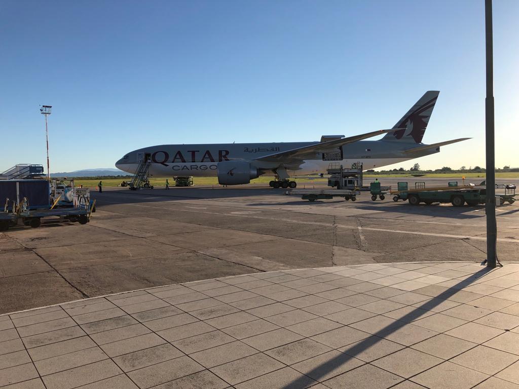 El avión de Qatar llegó con las máquinas que se usarán el último fin de semana de marzo.