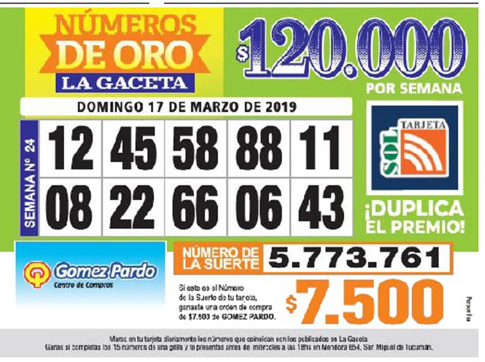 Los Números de Oro de LA GACETA del 20 de febrero de 2026