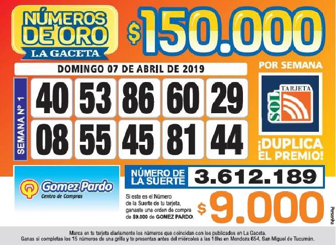 Los Números de Oro de LA GACETA del 20 de febrero de 2026