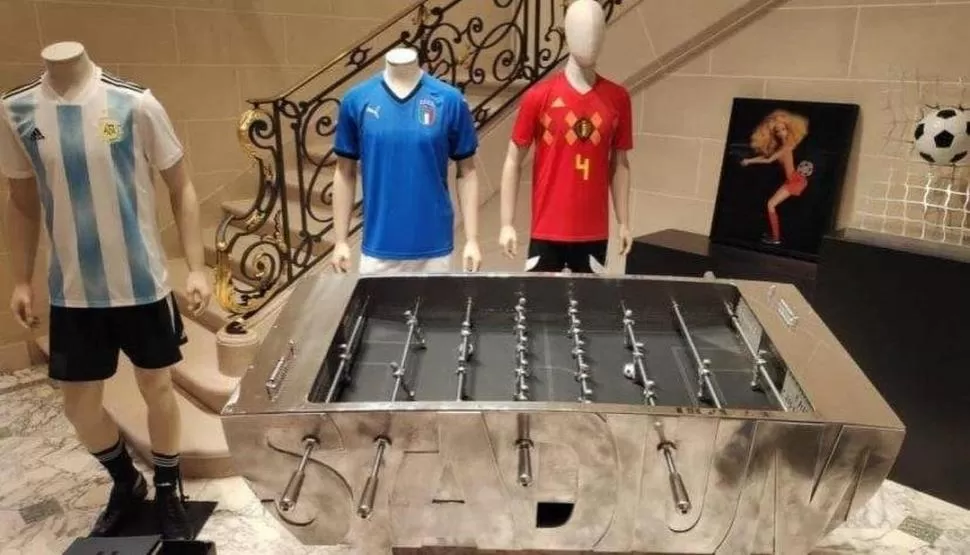 Las plantillas de hombrecillos de metal del exclusivo metegol con tapete de cuero están constituidas por leyendas del deporte como Messi, Buffon, Di Stéfano, Eusebio, Johann Cruyff, Fabio Cannavaro, Zinedine Zidane, Paolo Maldini y Cafú.