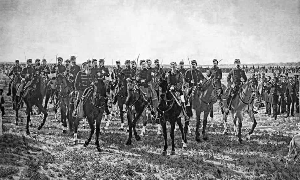 LA CAMPAÑA DEL DESIERTO. En el clásico cuadro de Blanes, el último de los jinetes, a la derecha, es el entonces teniente coronel Napoleón Uriburu.