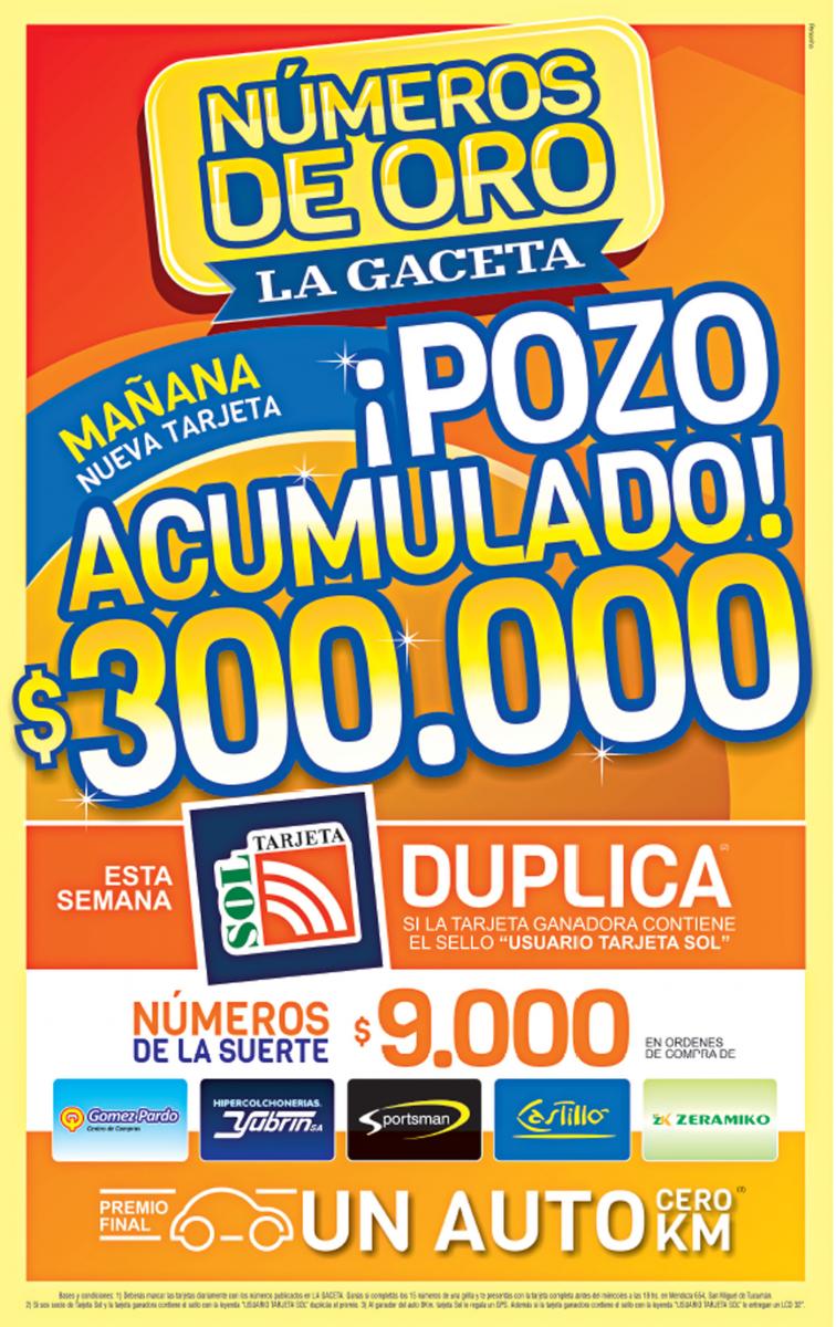 Con la tarjeta que se entregara el próximo viernes los lectores podrán participar por el pozo acumulado de $300.000 y si la tarjeta ganadora contiene el sello de usuario Tarjeta Sol duplicarán su premio.