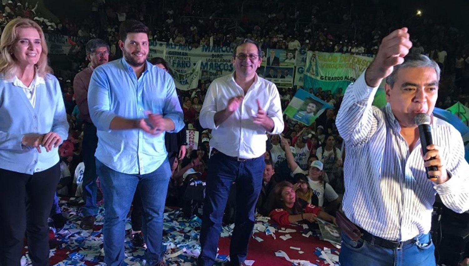 En Alderetes.- El peronismo promete una tensa contienda electoral en distritos del interior, entre los que aparece Alderetes. Allí, el intendente Sergio Venegas apunta a la reelección como postulante de Hacemos Tucumán, el espacio que lidera el senador José Alperovich. Enfrentará a, entre otros, el postulante oficialista, Aldo Salomón, quien recibió el apoyo de la fórmula del Frente Justicialista, Juan Manzur-Osvaldo Jaldo. “Gracias a todos los compañeros que integran las diferentes listas de candidatos a concejales, y que apoyan a la única fórmula peronista, y que junto a ellos vamos hacer que Aldo sea el intendente de Alderetes y que Graciela (Gutiérrez) siga por cuatro años más en la Legislatura”, afirmó Jaldo, en alusión a las 26 listas de candidatos a concejales que integran el espacio local.