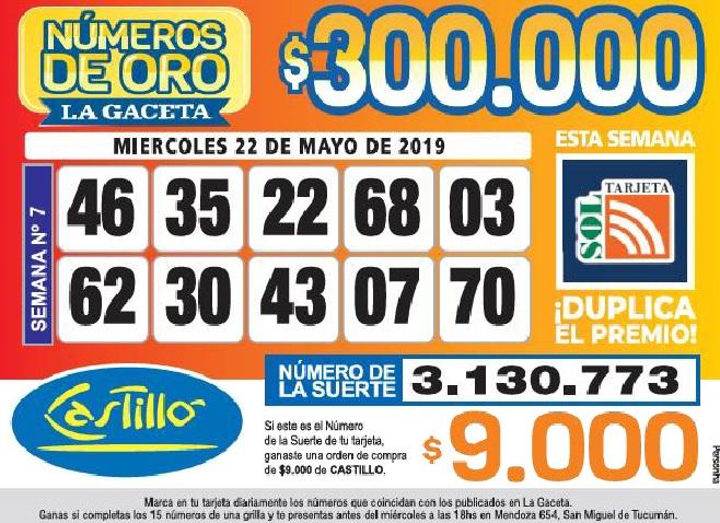 Los Números de Oro de LA GACETA del 20 de febrero de 2026