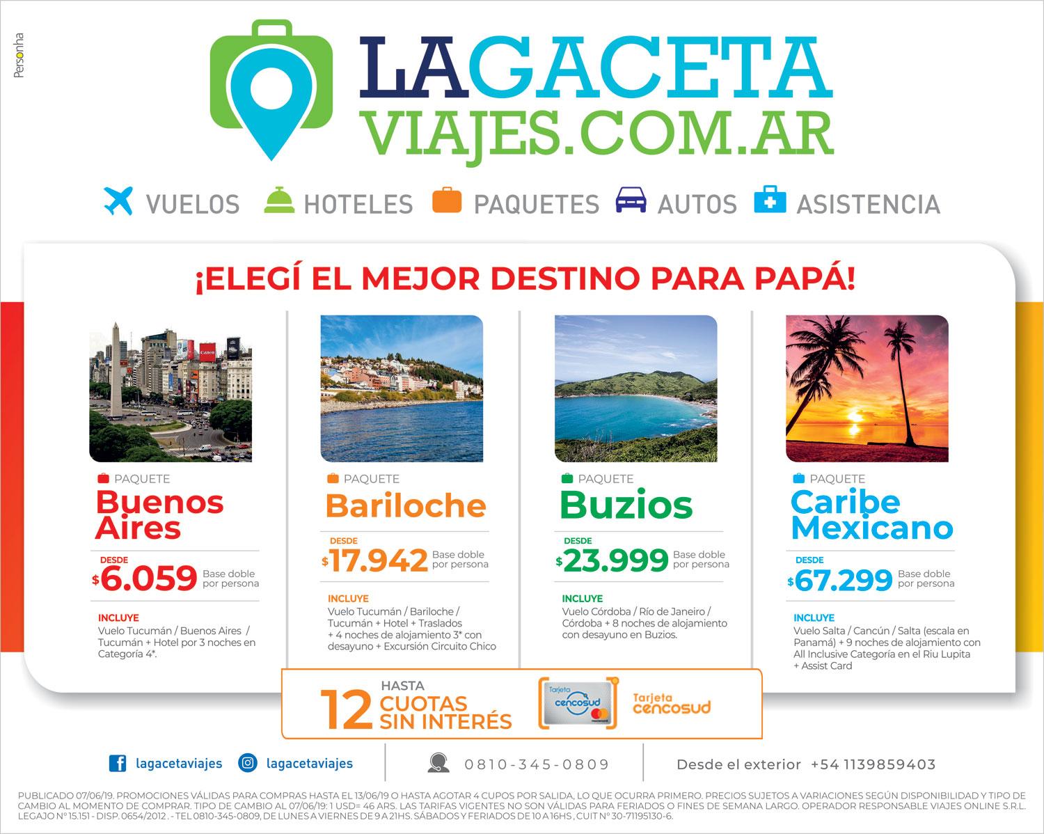 Saliendo de la ciudad de Salta y con escala en Panamá llegas con papá a Cancún en un abrir y cerrar de ojos. El voucher incluye vuelos, 9 noches de alojamiento con un All IInclusive en el maravilloso Riu Lupita y también Assist Card para no preocuparte por nada. México te espera desde $ 67.299 por persona en base doble. Ingresá AQUÍ para más info.