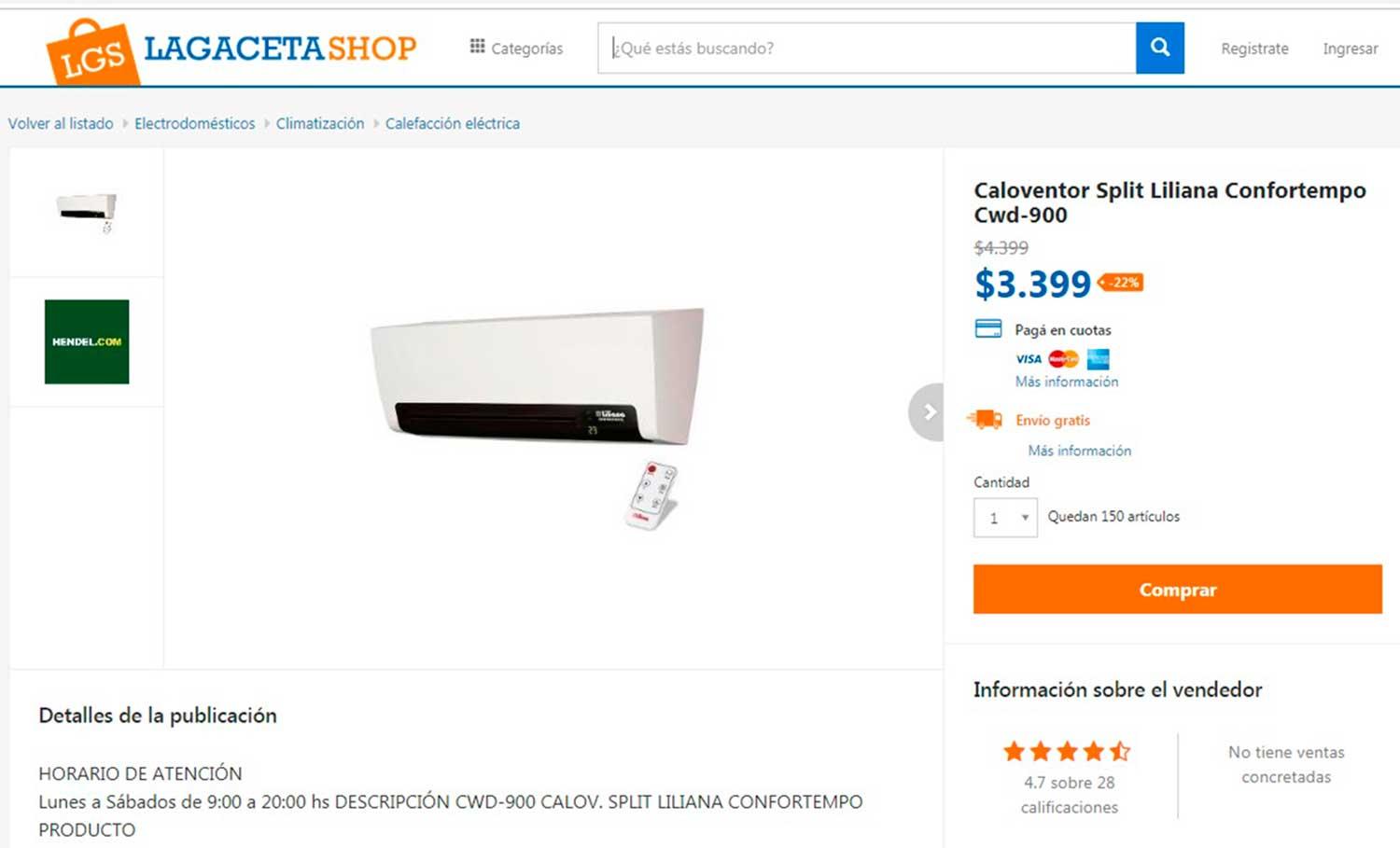 Si tus necesidades son más grandes este Caloventor Split Liliana Confortempo Cwd-900 sirve para espacios más amplios como comedores, oficinas o la sala de juego de los chicos.