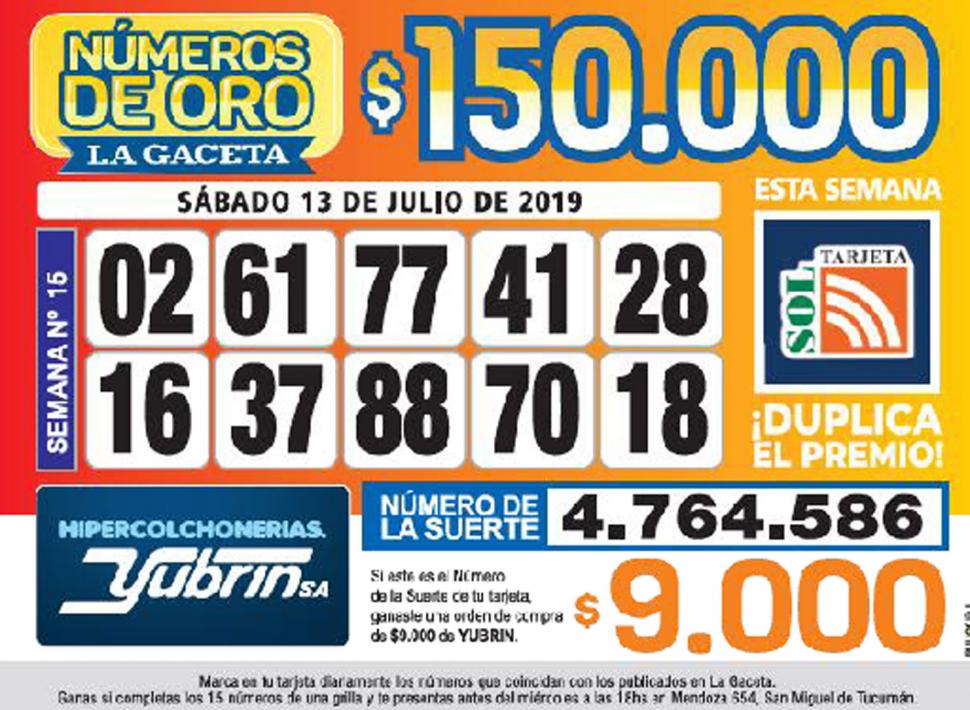 Los Números de Oro de LA GACETA del 20 de febrero de 2026
