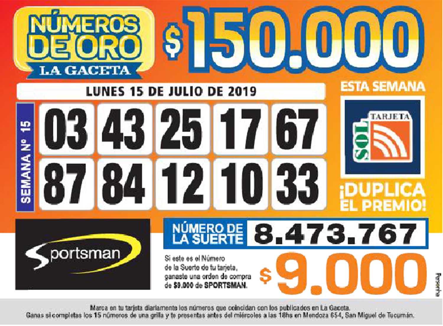 Los Números de Oro de LA GACETA del 20 de febrero de 2026