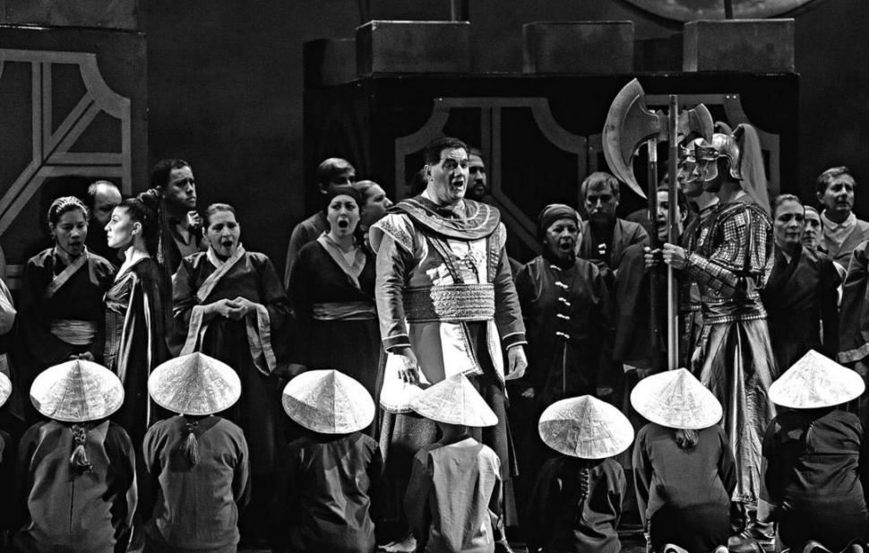 De entrada, todo es contundente en “Turandot”, la ópera de Giacomo Puccini que abrió el 59° Septiembre Musical en el teatro San Martín, la noche del viernes, y que se repone hoy y el martes. La orquesta empieza a tocar al mismo tiempo que el telón se descorre (no hay obertura, como en otras óperas). En un escenario misterioso y exótico, coros de adultos y de niños vestidos en tonos sombríos; son el pueblo que, desde el vamos, pide: “¡Que le corten la cabeza!”