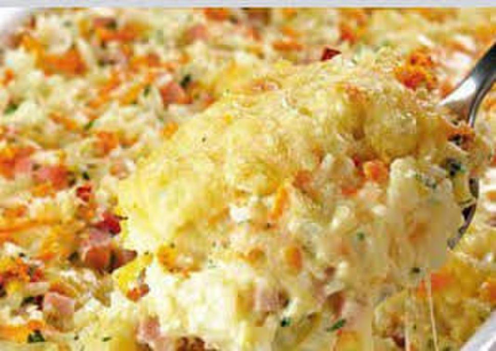 Ingredientes: 3 tazas de arroz cocido, 2 zapallitos medianos rallados y escurridos, 1 taza de ricota, queso de rallar a gusto, 1 taza de jamón cocido en cubitos, 2 huevos batidos, ¼ taza de leche, 1 cucharadita de bicarbonato de sodio, 1 taza de harina, spray oleoso, aceite, pimienta y sal.