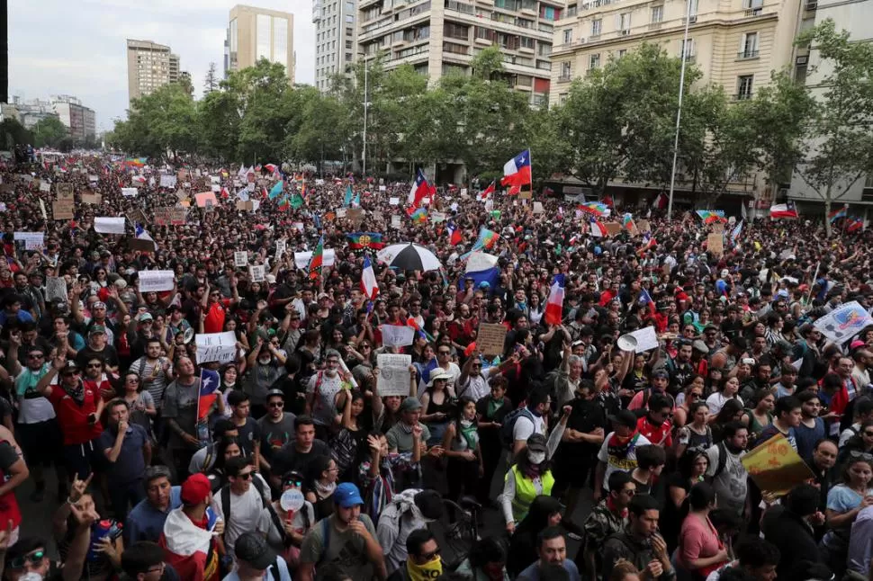 “La desigualdad social en Chile provoca la rebelión de un Pueblo”. Las declaraciones del residente chileno Sebastián Piñera, “Estamos en guerra contra un enemigo poderoso, implacable, que no respeta a nada ni a nadie” y las de su esposa, Cecilia Morel, “Vamos a tener que disminuir nuestros privilegios y compartir con los demás”, son como echar nafta al fuego, ya que la desigualdad social en Chile es muy grave, con educación paga y un servicio de salud para unos pocos privilegiados y para la gran mayoria, deficiente. Esto se ve con las AFJP (de jubilación privada), los salarios deprimidos y los trabajadores precarizados, carentes de derechos y paga miserable. Nuestro continente es el más desigual del mundo y Chile es uno de los países más desiguales de Latinoamérica, con un desarrollo industrial bajo. La actividad minera es su fuerte y la extracción de cobre sobresale como la principal fuente de riquezas. La situación se vuelve más compleja; se replican las movilizaciones y los saqueos en distintos puntos del país, mientras se multiplican las cifras de muertos (17) de heridos y de detenidos, con el accionar violento de los carabineros y del Ejército que agravan el conflicto, agregando ribetes de extrema peligrosidad. El presidente Piñera privilegia la autoridad y el orden; se debe ocupar de dar soluciones al pueblo. La deuda social se paga exclusivamente con justicia social. Eso significa trabajo digno para todos, salarios y jubilaciones y pensiones dignas, salud y educación gratuitas para todos y viviendas sociales. El Estado se tiene que hacer cargo de la seguridad social y previsional de todos los chilenos, se debe avanzar con más derechos, más igualdad, más justicia, que esta rebelión sirva para parir un Chile más justo y solidario, donde los privilegios sean erradicados para siempre..