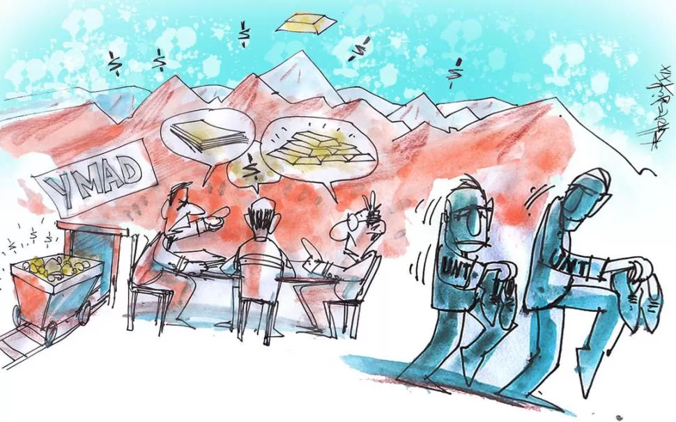 La comisión que se ha de constituir para estudiar tanto el tema minero como las responsabilidades acaso pueda determinar si, como dice Marchese, es un buen negocio para la UNT o si se trata de un saqueo y de un riesgo ambiental. ¿Habrá planteos jurídicos, como los del acta de 2008, cuyo final es incierto? Los otros directores de YMAD dicen que la propuesta minera aprobada es la mejor de las alternativas con que se cuenta, que la empresa interestadual está “en el peldaño anterior a la nada” y que el convenio tiene estrictas cláusulas de transparencia y anticorrupción. En el acta se menciona que la UNT acompañó favorablemente las negociaciones y que dio su acuerdo para finalizarlas. Se critica, eso sí, indirectamente, a los directores de la UNT por “huir a hurtadillas del campo de las decisiones”.
