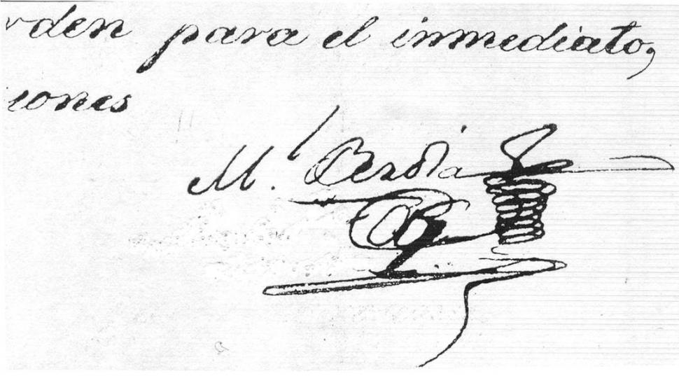 MANUEL BERDIA. Firma del médico en uno de los muchos documentos oficiales de su época.