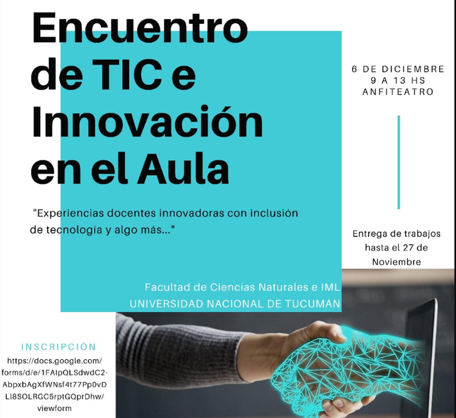El link de inscripción se encuentra en: https://www.facet.unt.edu.ar/facetinforma/2019/11/15/encuentro-de-tic-e-innovacion-en-el-aula/.