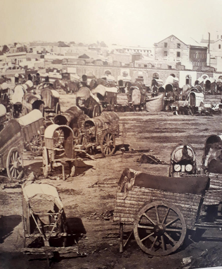Las carretas de bueyes (la mayoría de las cuales se construían en Tucumán), que transportaban productos de tierra adentro, llegaban por centenares a Buenos Aires. Se agrupaban en los arrabales, como la plaza de Miserere o el Resguardo, de Palermo. En este último lugar las vio el viajero Robert Mac Cann en la década de 1840. Allí, narra, “la costa forma un extenso campo cubierto de pasto verde y corto, que sirve de punto de reunión a las carretas de bueyes que vienen del interior”.