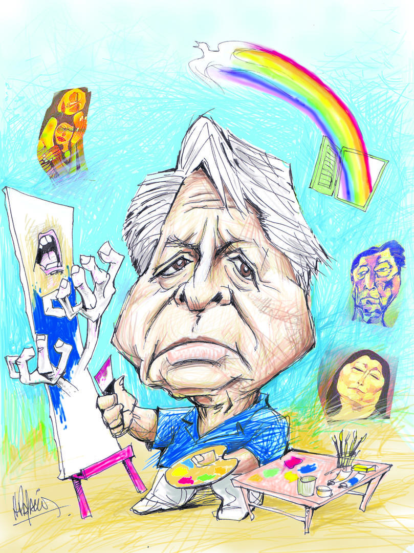 Las privaciones lo ponen en la cima de diez hermanos. Los siete años ya pincelan su camino. Con una gota de leche de su madre disuelve las pastillas de acuarela. Los 46 años maternos se extravían en la muerte. Un alma changuita a la deriva. Los colegios lo echan seis veces por caricaturizar a sus profesores, por mal alumno. “Hazte zapatero porque no sirves para nada”, le dice uno de ellos. 1933. La ilusión de “m’hijo el dotor” se desvanece. Las puertas de la Escuela de Bellas Artes se abren. El rechazo al conservadurismo no le impide convertirse en un estudiante destacado. Sus trabajos impactan. “Las primeras cosas que ya empiezo a ver con mis ojos de niños son estas estampas de bombardeos, de barcos que se hunden, de aviones que bombardean ciudades, de ahogados, de ahorcados, de fusilados y esto no ha parado absolutamente. Me gradúo en la Escuela de Bellas; según el discurso del director, jamás había pasado por la escuela de Bellas Artes un alumno como yo. Al año exacto, hago mi primera exposición y es todo lo contrario a lo que aprendí en la escuela. Empiezo a hacer unos cuadros enormes de angustias terribles y esto fue una sorpresa muy grande, no quiero decir para el mundo, para mi país tal vez”, murmura.