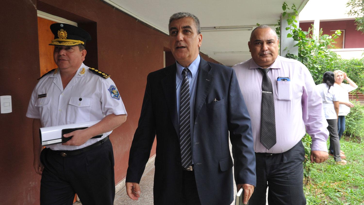 EN EL JUZGADO. Ibáñez, secretario de Seguridad, y Manuel Bernachi, jefe de Policía, al salir de la audiencia. LA GACETA / FOTO DE ANTONIO FERRONI