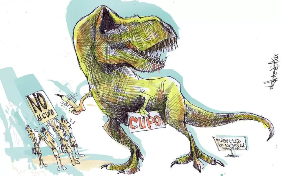 Por eso esa veintena de reclamantes parecen solos. Pero no están solos. En realidad quienes están solos son el decano Mateo Martínez y el Consejo de Medicina, porque nuestra universidad es prácticamente la única del país con este sistema, después de que todas comenzaron a adecuar sus estructuras a lo que exige la ley de Educación Superior, modificada en 2015, que defiende claramente el ingreso irrestricto, sin aranceles ni cupos. Las autoridades de las otras universidades han renegado pero se adaptaron y escogieron alternativas para resolver el problema de la masividad. La UBA, que tradicionalmente ha tenido altas exigencias en los primeros años de estudio, subió la presión en las materias de biología, física y biofísica y añadió un examen final de toda la carrera. En Córdoba tienen un nivel de correlaciones que funciona como cedazo. En fin, en Medicina de Tucumán parecen quedar los últimos dinosaurios del cupo.