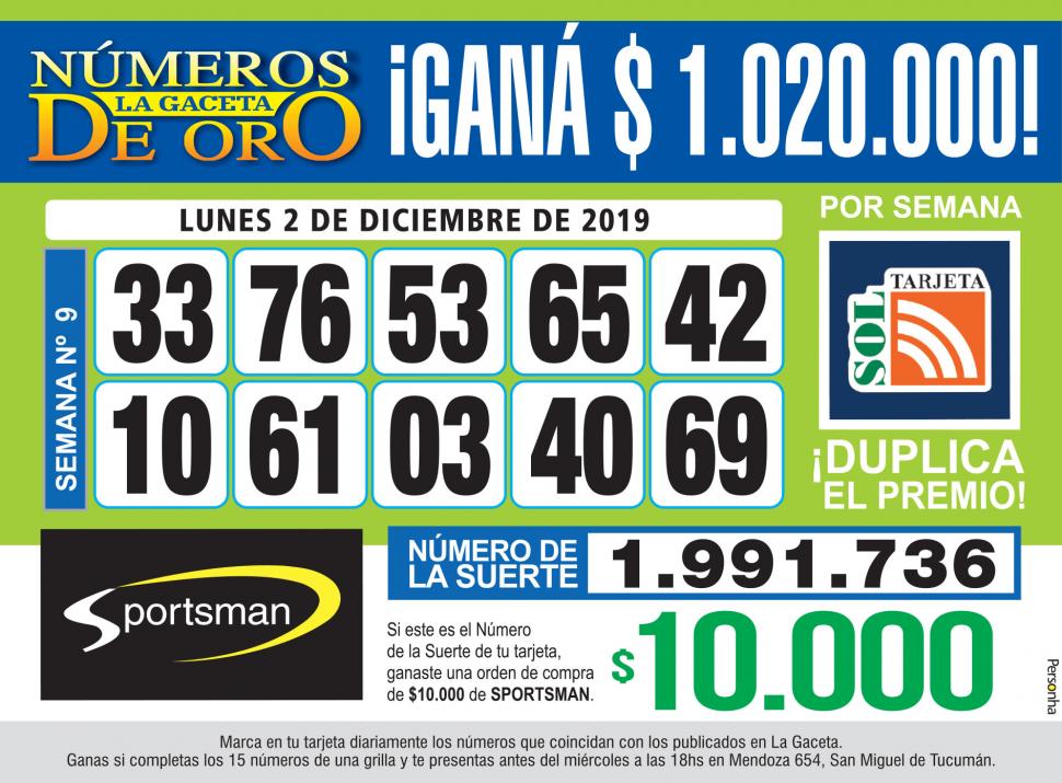 Los Números de Oro de LA GACETA del 26 de diciembre de 2025