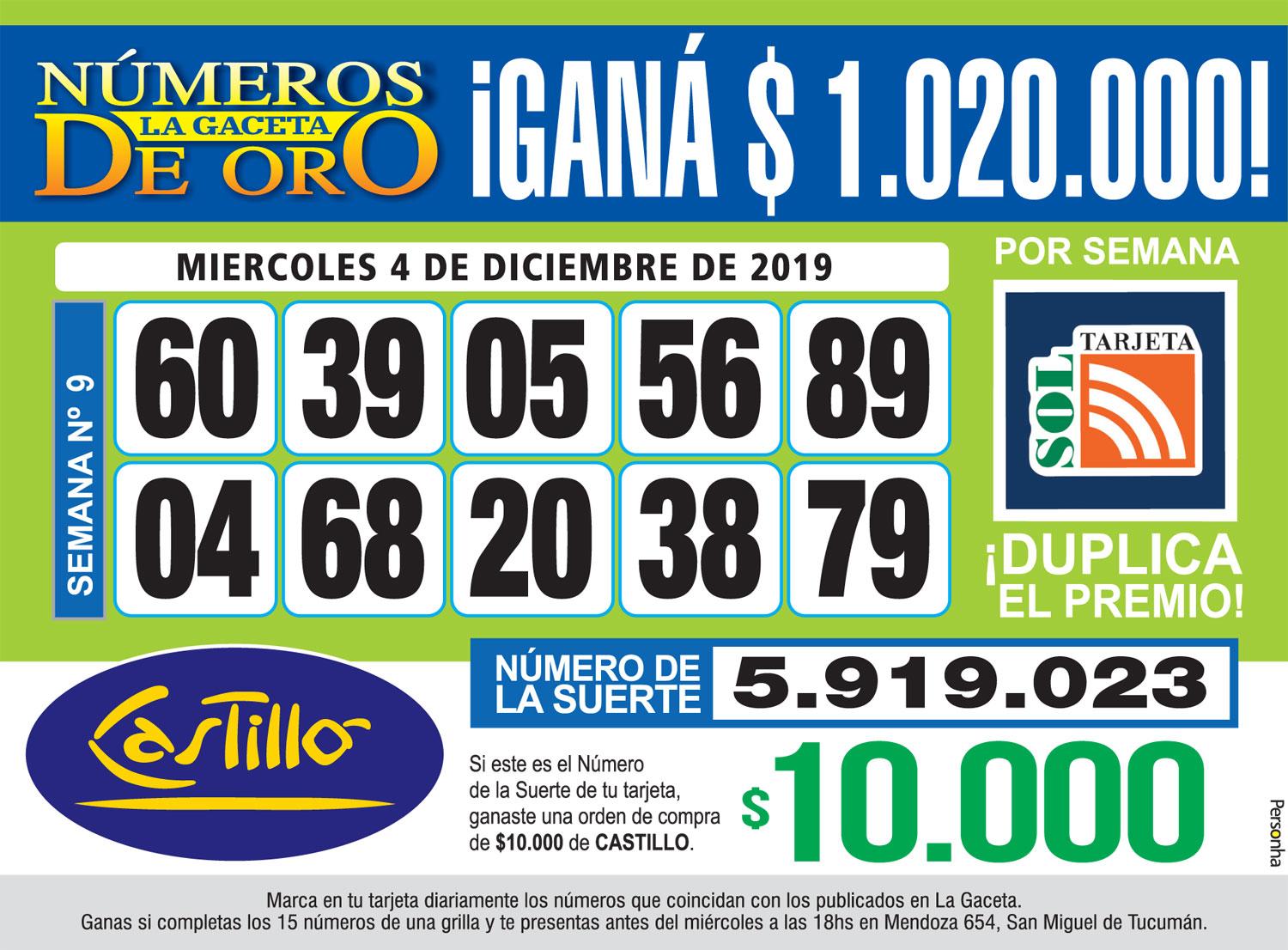 Los Números de Oro de LA GACETA del 26 de diciembre de 2025