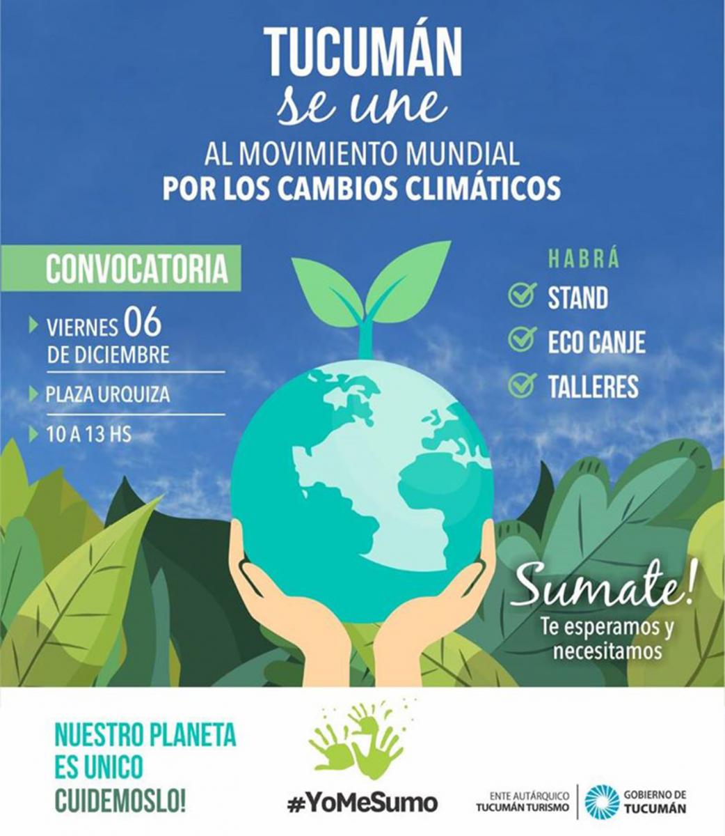 A tono con numerosas empresas, organizaciones, gobiernos e instituciones, el Ente Tucumán Turismo, organismo que encabeza Sebastián Giobellina, a través de su campaña #YoMeSumo, acompañará el movimiento mundial #6dit’snow, que se desarrollará este viernes en todo el planeta. Este movimiento busca que la sociedad se movilice con acciones concretas que busquen preservar el medio ambiente. En Tucumán las actividades se harán de 10 a 13 en la plaza Urquiza.