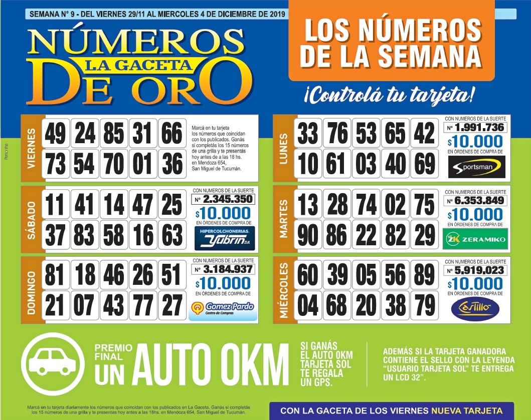 Como cada miércoles, se publicó la grilla completa de los Números de Oro de LA GACETA para que los lectores puedan revisar sus tarjetas. Aquellos que completen los 15 números de una de las grillas de su cartón deberán presentarse en calle Mendoza 654 hasta las 18. En caso de que el ganador sea usuario Tarjeta Sol, duplica el premio.