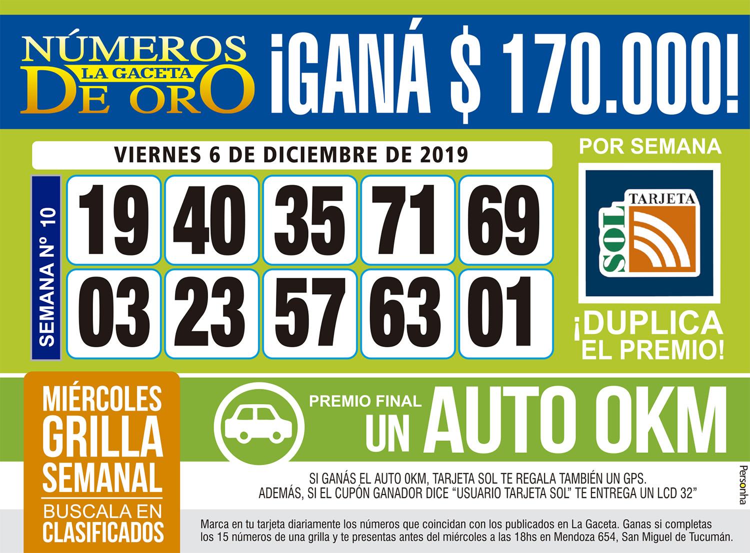 Los Números de Oro de LA GACETA del 26 de diciembre de 2025