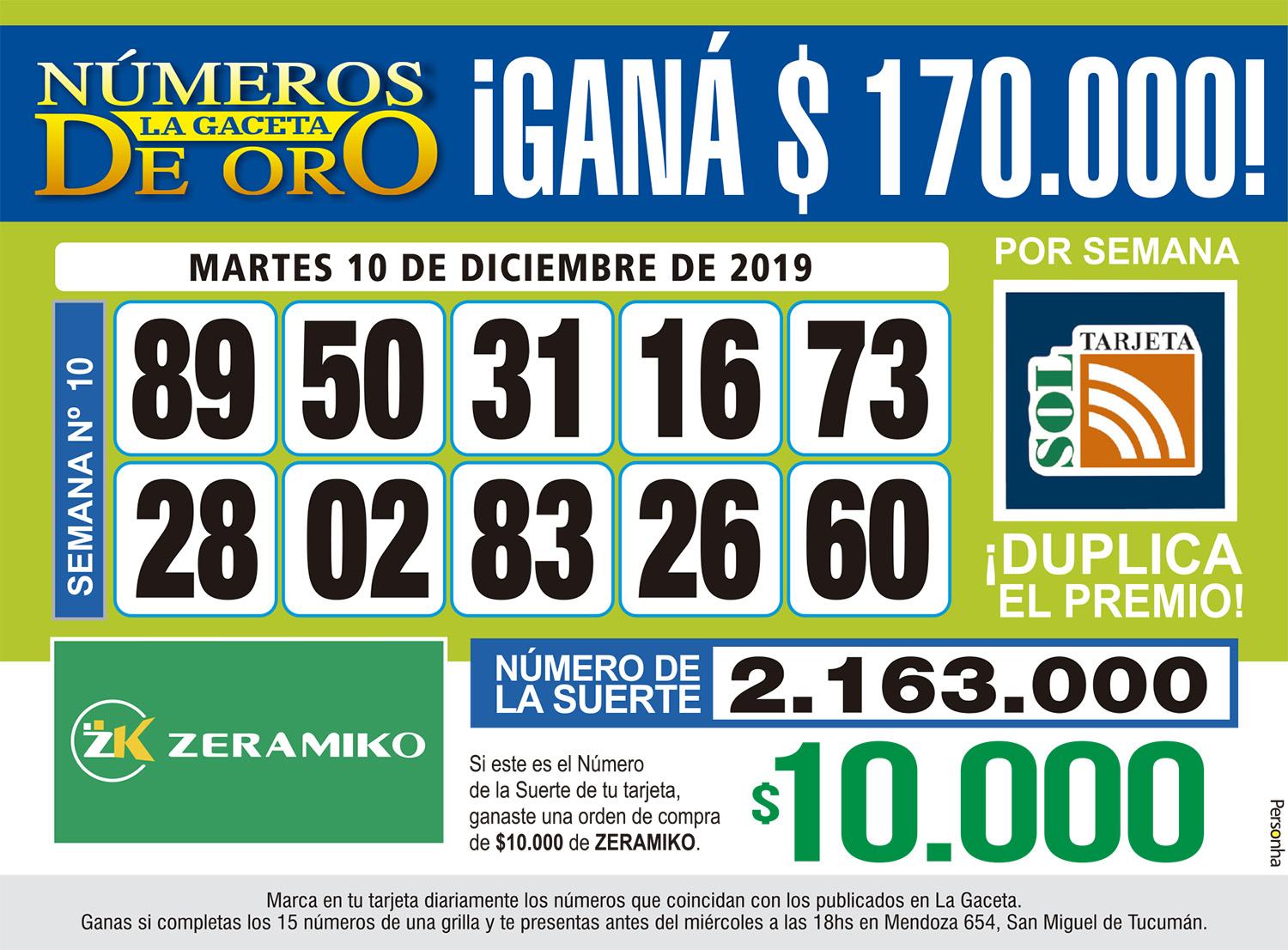 Los Números de Oro de LA GACETA del 26 de diciembre de 2025