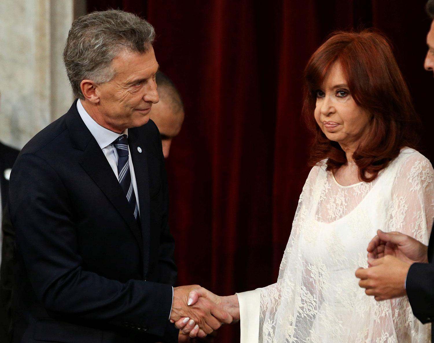 Un abrazo con Alberto Fernández y la mano con Cristina. La ex presidenta saludó a Macri con indiferencia y sin siquiera mirarlo a los ojos, una actitud que no pasó desapercibida.