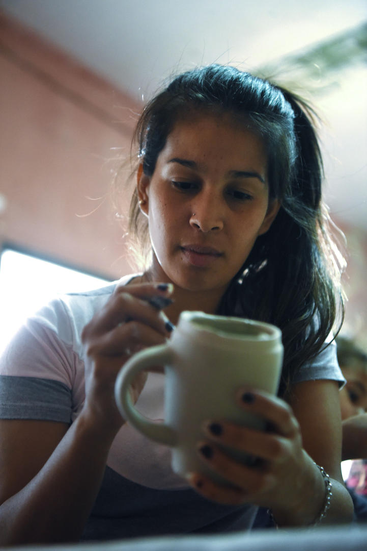 Ante la inexperiencia, lo que primó fueron las ganas de aprender y la energía que demostraron cuatro madres que hoy se convirtieron en las manos maestras detrás de tantas tazas y macetas que decoran la habitación. Entre ellas, con la vista fija en un cuenco recién desmoldado, está Vilma Luna (41 años). “Al empezar tuvieron que tenerme bastante paciencia porque no soy muy ducha con las manualidades, pero voy aprendiendo todos los días. Tengo cinco hijos y mi marido está desocupado así que este trabajo me ayuda para sostener su educación”, explica mientras humedece una pequeña esponja y afina los contornos de la pieza.