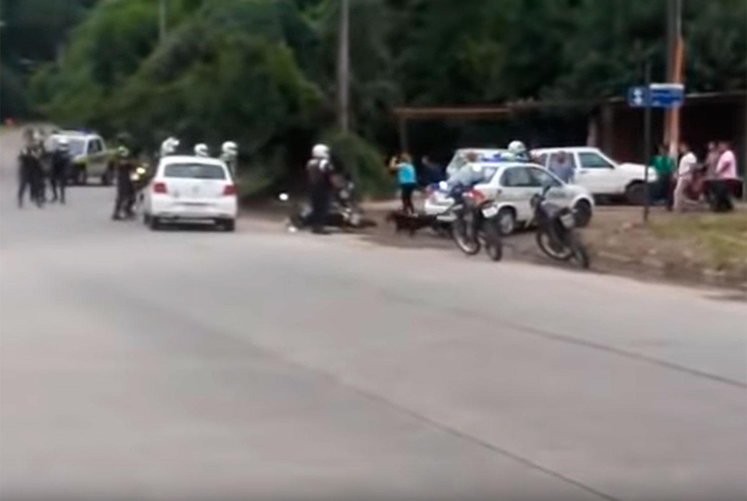 Durante la persecución, el auto que conducía "Mandarina" fue alcanzado en Saavedra Lamas al 800 por el agente de la Patrulla Motorizada Cristian Maza. Cuando le ordenó al sospechoso que detuviera el auto, el joven golpeó la moto del efectivo policial provocando que este perdiera el equilibrio y quedará tendido en la calle.