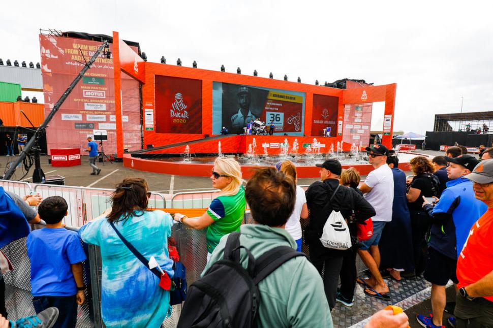 Pese a la interesante propuesta de los organizadores, que alternaron el paso de los protagonistas de la competencia con espectáculos musicales de primer nivel, solo unos pocos se acercaron al parque Al-Sanabel, el enorme predio ubicado a metros del mar Rojo en el que se dispuso la rampa, los stands de los patrocinadores y un VIP de exageradas dimensiones. Desde ya que también faltaron esas columnas de público que solían acompañar el paso de los competidores en su camino hacia el podio de largada, tal como fue habitual en las distintas ciudades que albergaron el inicio de la prueba en Argentina, Chile, Perú y Paraguay. La mayoría de los saudíes de esta bella ciudad portuaria le fueron indiferentes al Dakar y prefirieron seguir con su rutina habitual de los sábados por la tarde: caminar y andar en bicicleta por el boulevard Al Kurnaysh.