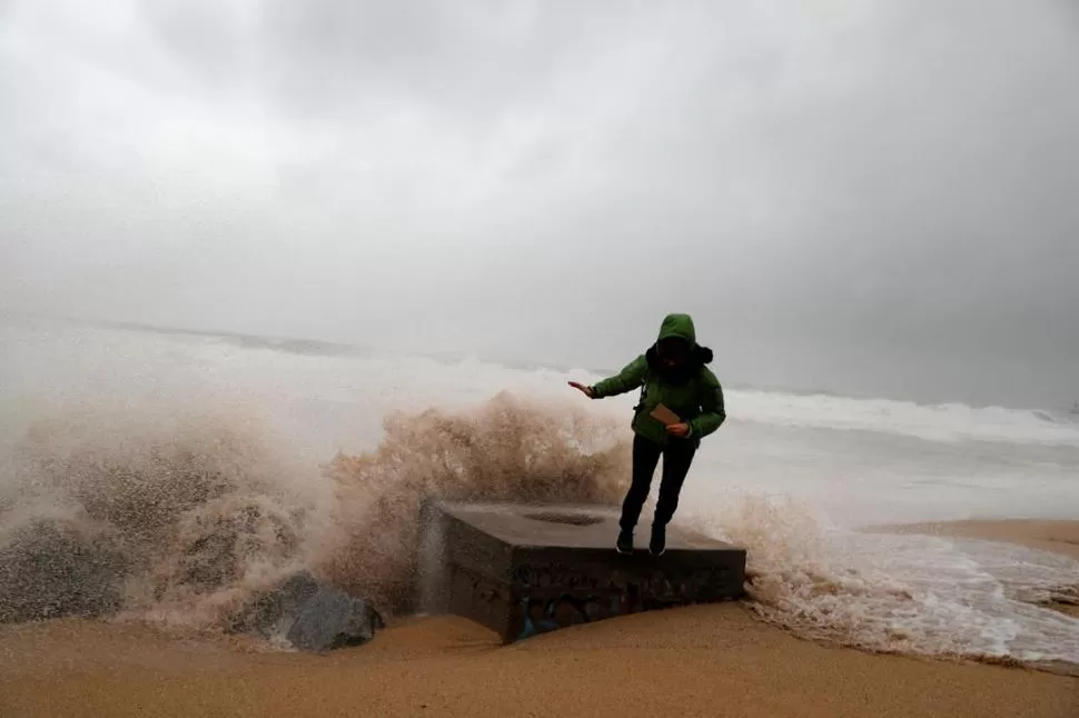 Una mujer es sorprendida por las olas que impactan contra la costa durante la tormenta “Gloria”, que se produjo en la zona sur de España. Puntualmente, la foto fue tomada en Badalona, ciudad cercana a Barcelona, en Cataluña.