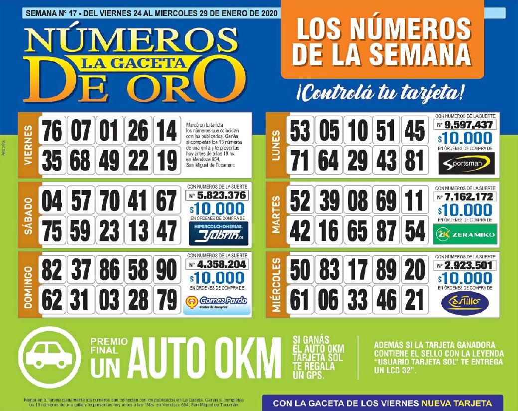Como cada miércoles, se publicó la grilla completa de los Números de Oro de LA GACETA para que los lectores puedan revisar sus tarjetas. Aquellos que completen los 15 números de una de las grillas de su cartón deberán presentarse en calle Mendoza 654 hasta las 18. En caso de que el ganador sea usuario Tarjeta Sol, duplica el premio.